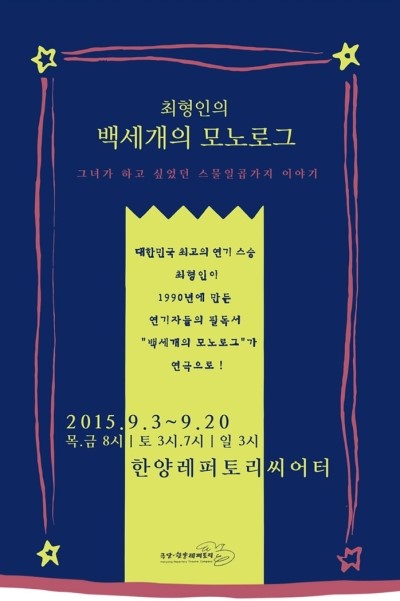 최형인의 백세개의 모노로그 그녀가 하고 싶었던 스물일곱가지 이야기 연극 <백세개의 모노로그&...