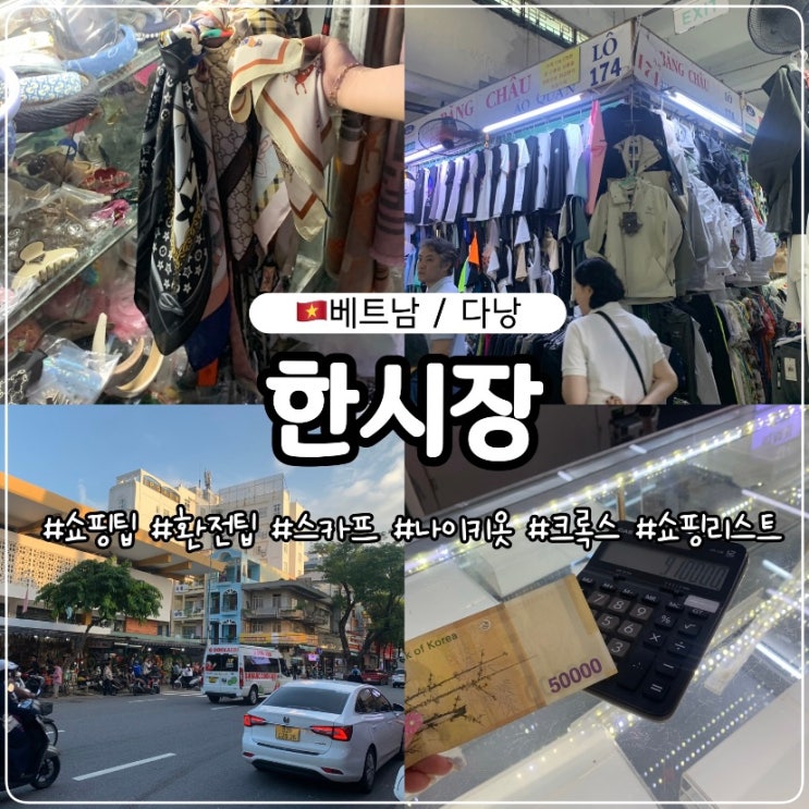 다낭 한시장 쇼핑리스트 기억하세요! 나이키 운동복 143번 스카프 153번 크록스 빠른 곳! 다낭 한시장 가격 구역 환전소 정리