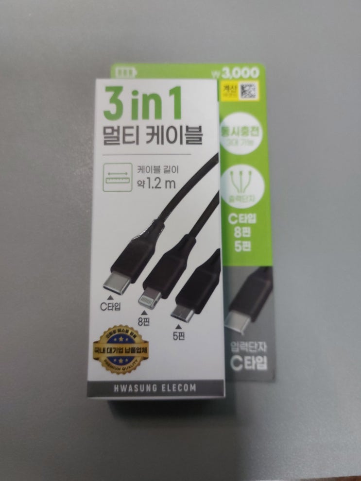 다이소 멀티케이블 3in1 동시충전가능 3타입 8핀 5핀 구입후기