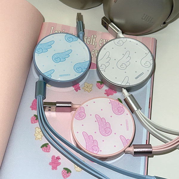 MAZZZZY 마찌 3in1 멀티 충전 케이블 포켓 / Pocket Multi Reel .ver 3_Angel Wing (3 Types)