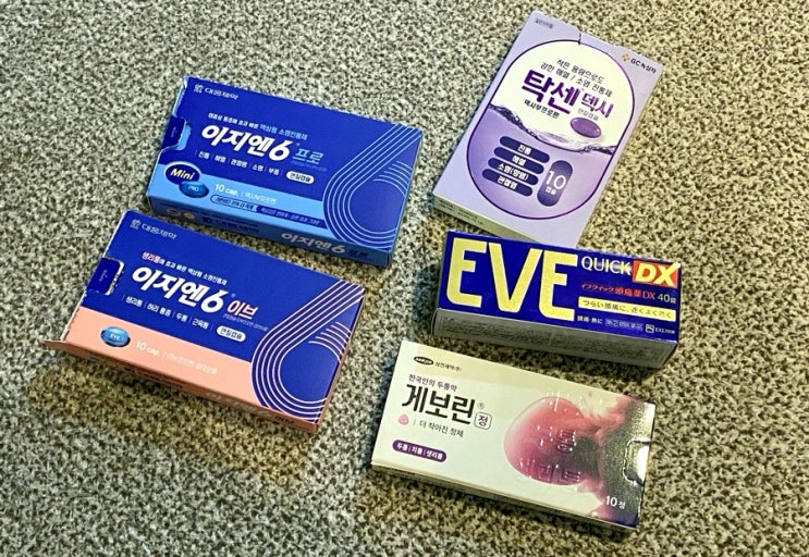 타이레놀, 게보린만 먹다가 이지엔6를 만나고 난 뒤 거의 이지엔6만 먹게 되었다. 진통제가 다 비슷한 진통...
