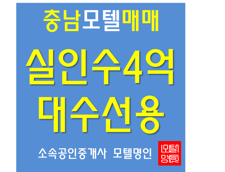 매물정보는 숙박업투자전문가 소속공인중개사 모텔명인이 직접 상담드립니다 숙박업투자 전문가와 상담하세...