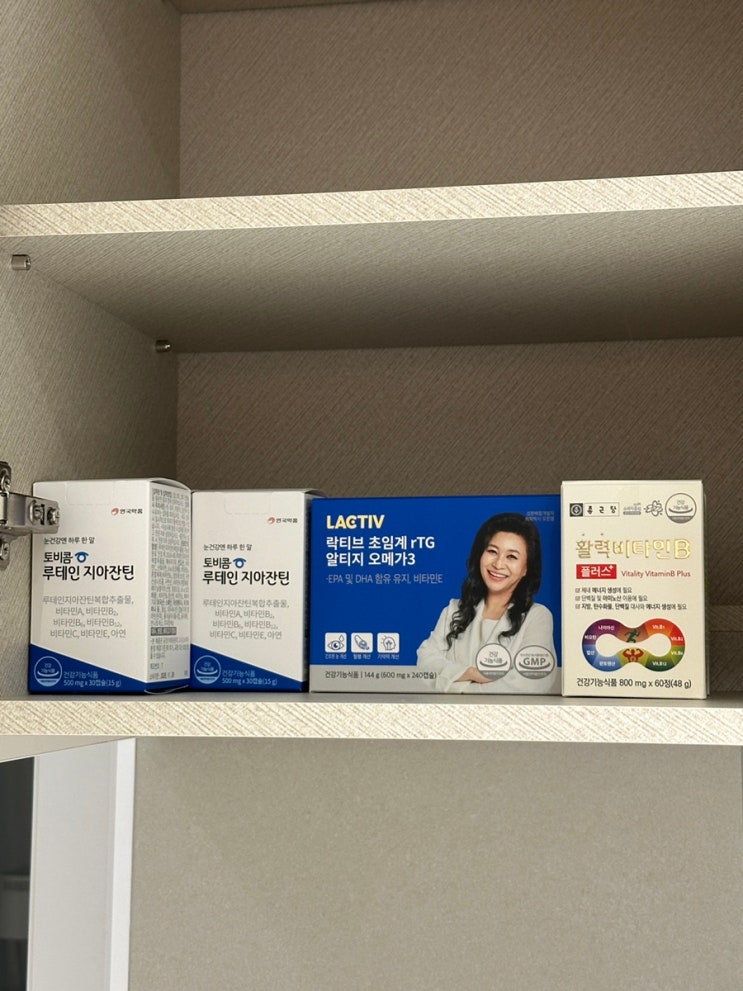 한가인 영양제 토비콤 루테인, 인산죽염, 종근당 비타민B, 초임계 오메가3, 슬로패밀리 대추청