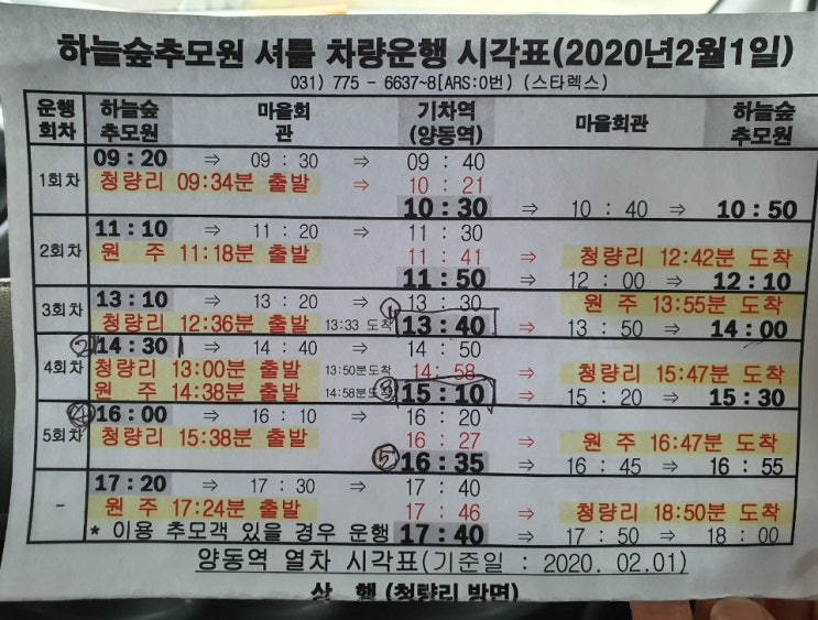 오늘 개망 언니께서 하늘숲에 가셨는데 셔틀 시간이 변경되었다고 합니다. 참고 하시기 바랍니다. 청량리 1...