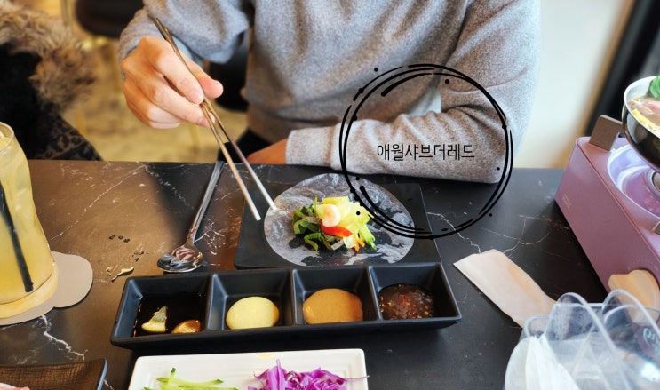 제가 이번 주말에 오션뷰 진짜 끝내주는 애월맛집 다녀왔어요 ~ 샤브샤브 월남쌈이 메인인 곳으로 다른데서...
