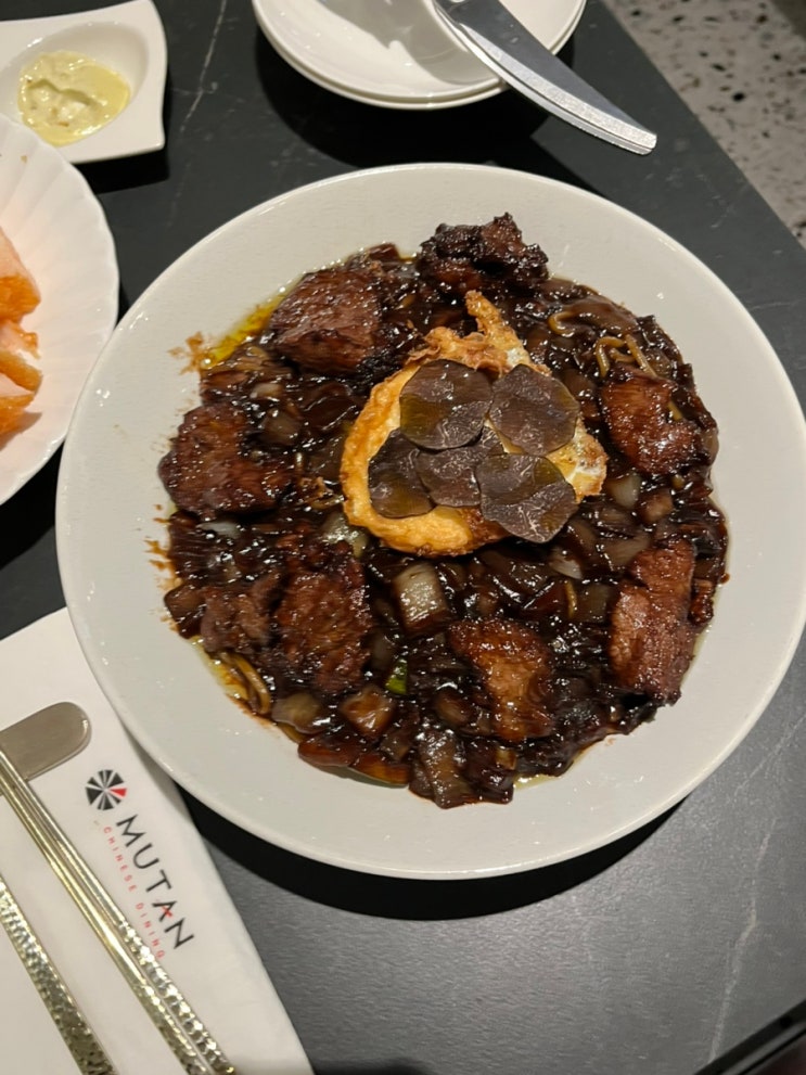 여의도데이트맛집 무탄 여의도점 커플시그니처A세트 마카롱멘보샤 의성마늘유린기 스테이크 트러플 짜장면