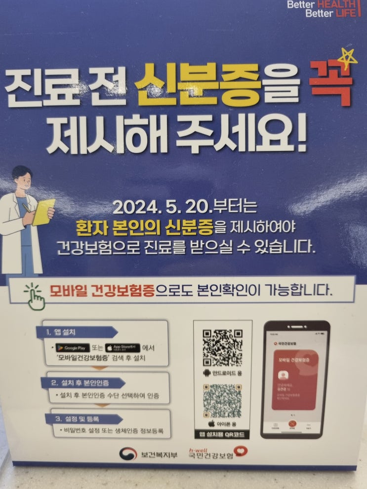 5월 20일부터 병원갈땐 신분증 챙기세요 ! 모바일 건강보험증 어플 ! 신분증 없는 아이들은