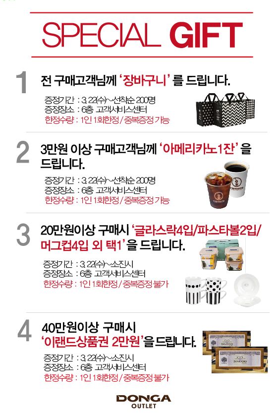 안녕하세요 동아본점 아울렛 본점의 행사 정보 알려드려요 이번의 사은행사는 ...