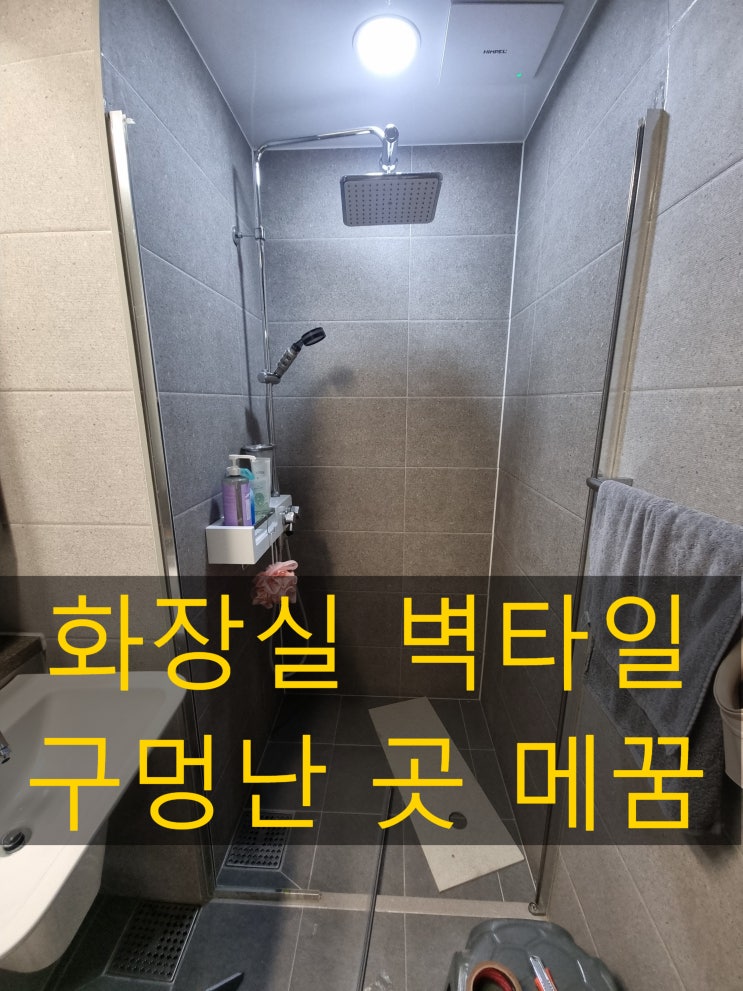 화장실 타일 구멍난 곳 메꿈 완료