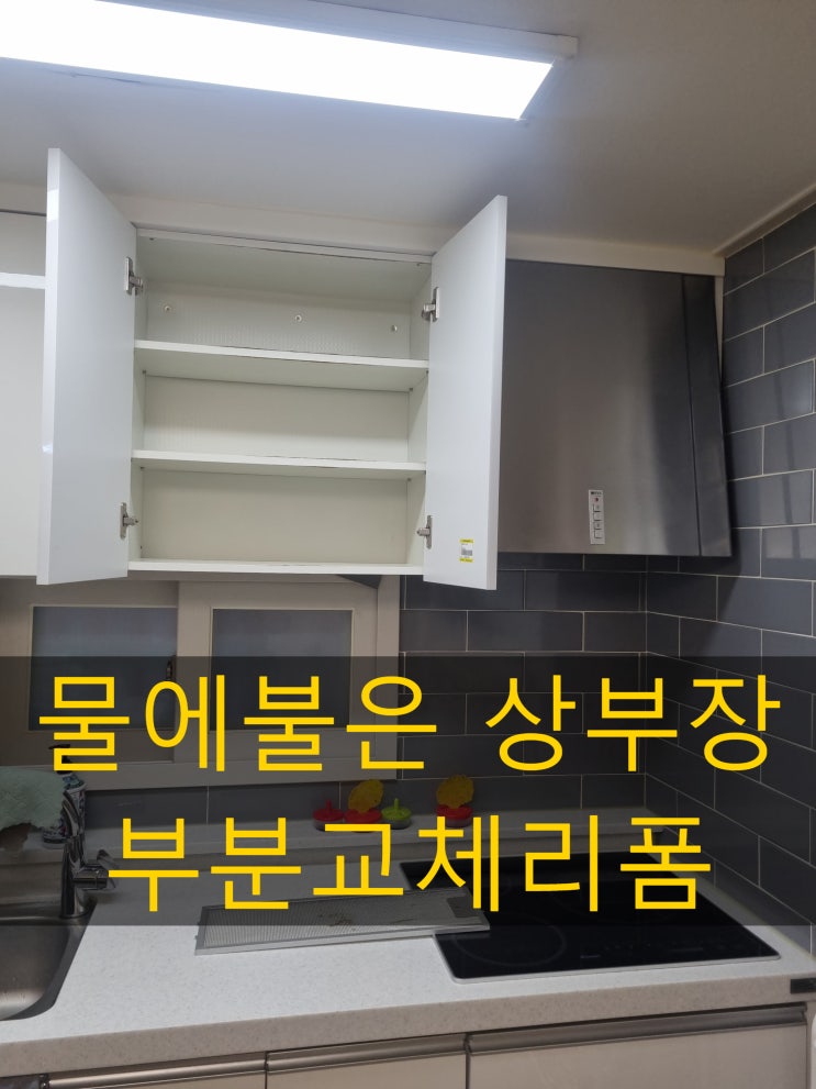 물에 불은 싱크대 상부장 부분리폼 교체작업