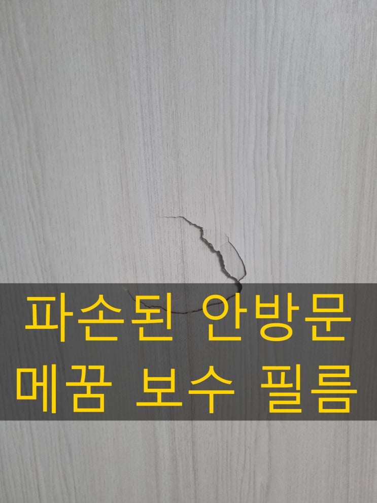 청주 파손된 안방문 구멍메꿈 후 인테리어필름 부착