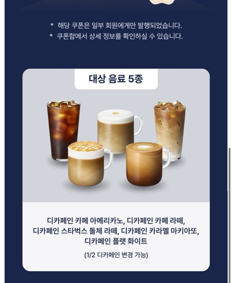 스타벅스 쿠폰ㅣ1월 디카페인 30% 할인ㅣ대상 음료 5종ㅣ Decaf Afternoon