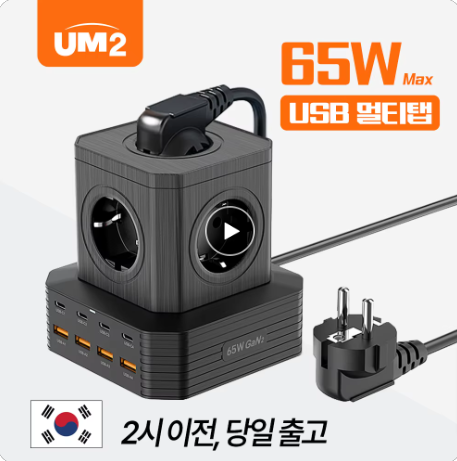고속 충전과 안전을 한번에! GAN PD 65W 5구 멀티탭 접지 타워