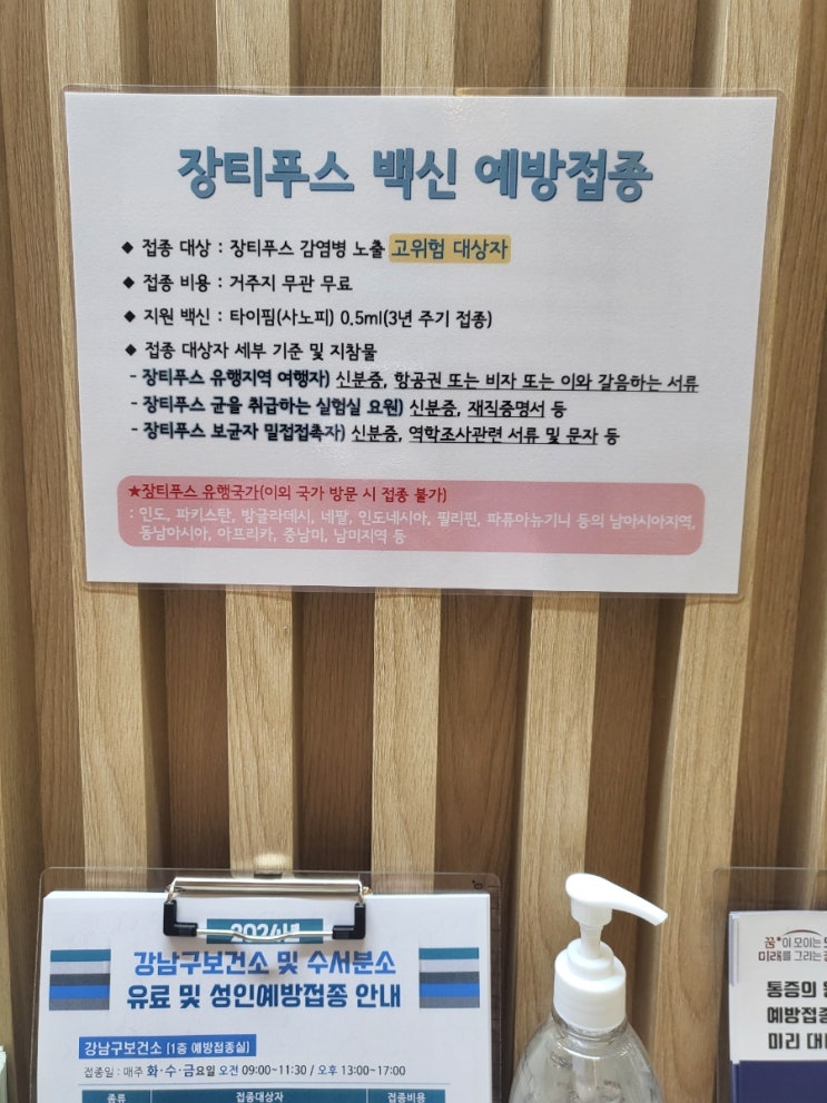 장티푸스 예방접종! 강남구보건소