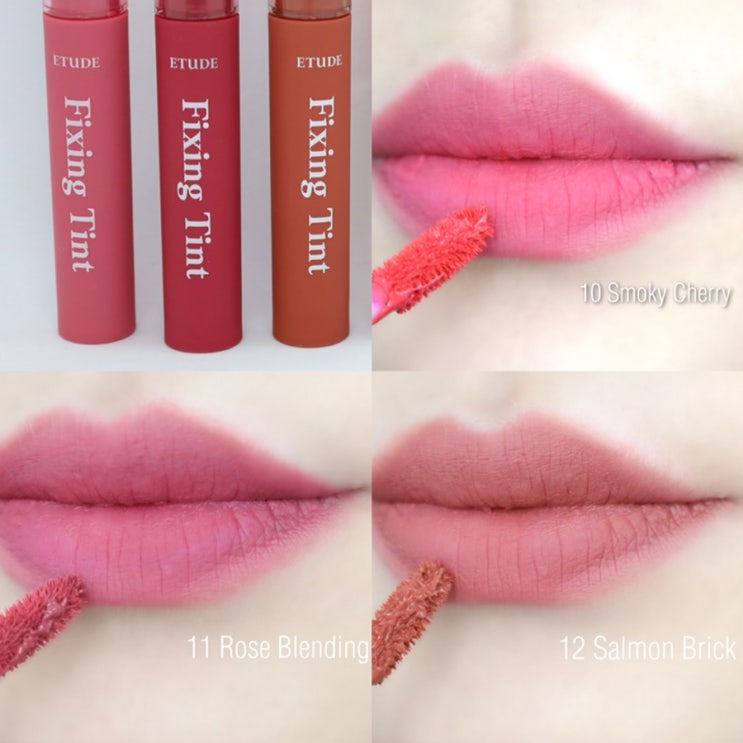 [에뛰드] 픽싱틴트 NEW컬러 출시! 10스모키체리, 11로즈블렌딩, 12살몬브릭 / 1호부터 12호까지 픽싱틴트 전색상! 플레이톤아이팔레트 피치거베라, 누드밀크티 간단발색까지!