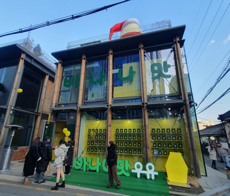 익선동 카페에서 차한잔 하고 한바퀴 휘휘 둘러 보는데 핫팩으로 유혹을 하는 바나나맛우유 50주년 팝업스...
