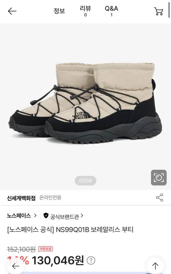 노스페이스 패딩부츠 NS99Q01B/NS99Q01C 보레알리스부티 착용후기