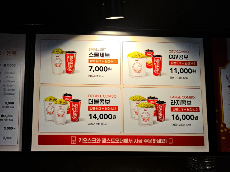 CGV 팝콘메뉴 콤보 가격 맛 비교 후기