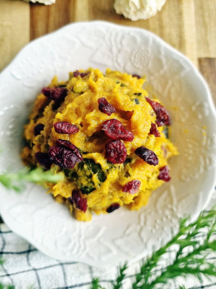 미니단호박2개로 단호박샐러드를 전자레인지로 만들었어요 단호박무스를 만들어 두면 간단한 아침메뉴나 간...