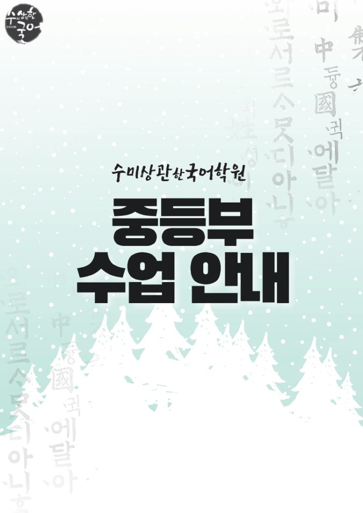 안녕하세요 수미상관한 대치동국어학원입니다. 2025년 1월부터 2월까지는 중등부 국어의 토대를 마련하는 ...