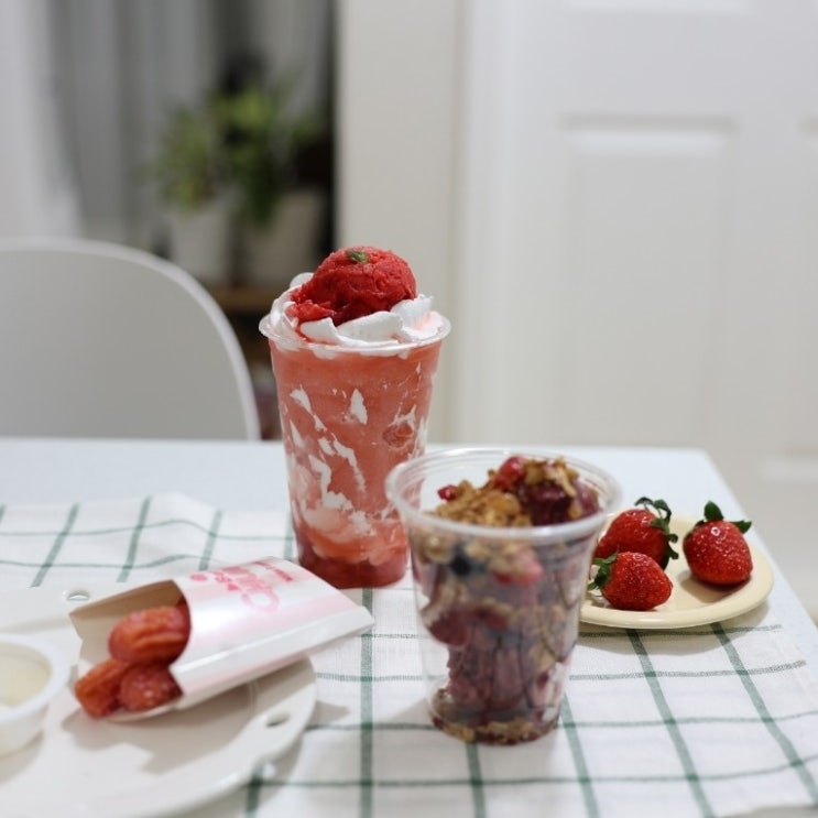 메가커피 신메뉴 딸기 젤라또 퐁당 프라페 츄러스 그리고 메가베리아사이볼 맛!