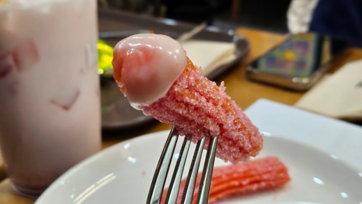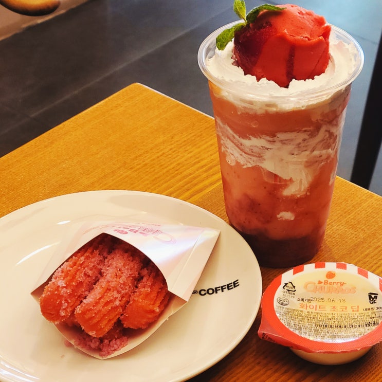 메가커피 신제품 딸기요정 핑크 츄러스 먹고왔어요