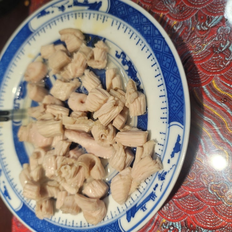 천협을 먹었습니다. 따듯할때 고추기름과 장에 찍어먹습니다. 식으면 질기거든요. 쫄깃쫄깃하지만 잘씹혀서...
