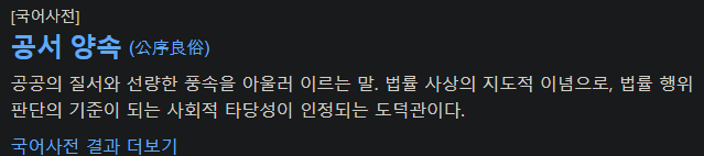 공서양속 [ 公序良俗 , public order and good morals ] 공공의 질서와 선량한 풍속. 공공의 질서는 국가 ...