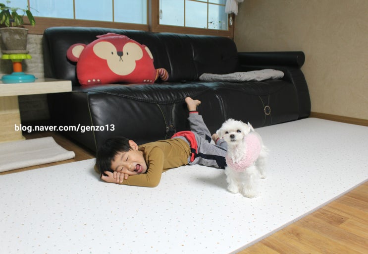 ? 고려화학 PVC 롤매트 매일 저녁 공놀이에 빠져있는 강아지라 미끄럼 방지를 위해 거실에 강아지 매...