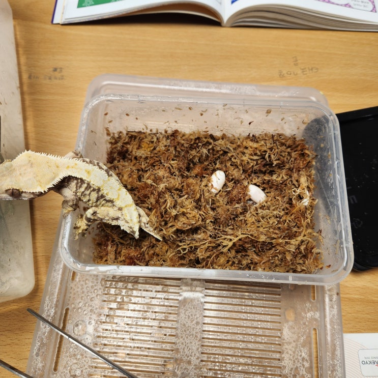 밀크(우리집 크레스티드 게코 암컷) 밀크가 25년 1월1일에 첫번째 산란을 하고 오늘 1월30일에 두번째 산란...