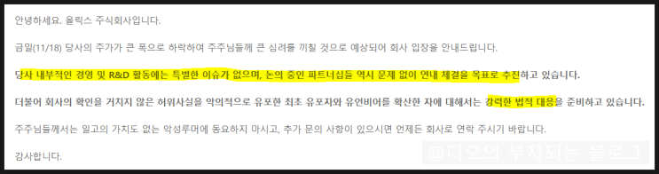 올릭스 기술이전 무산 루머 장 초반, 올릭스가 급락했다. 특별한 이슈가 없는데 큰 하락이 나오길래 무슨 ...