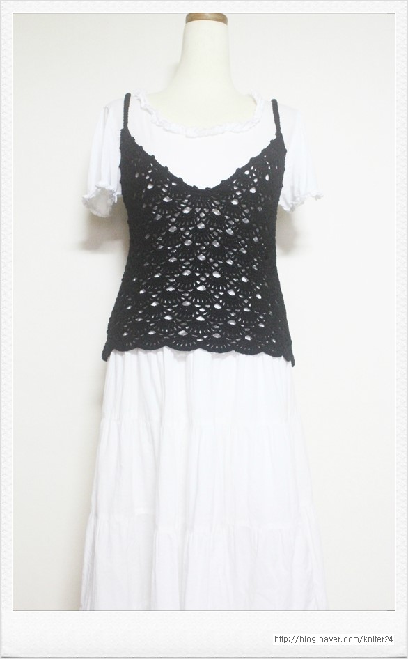 코바늘 뷔스티에 조끼 올 여름에 유행 옷 중에 하나 뷔스티에 조끼 ◈ 사용한 실 ; 면사 ◈ 실 사용량 ; 20...