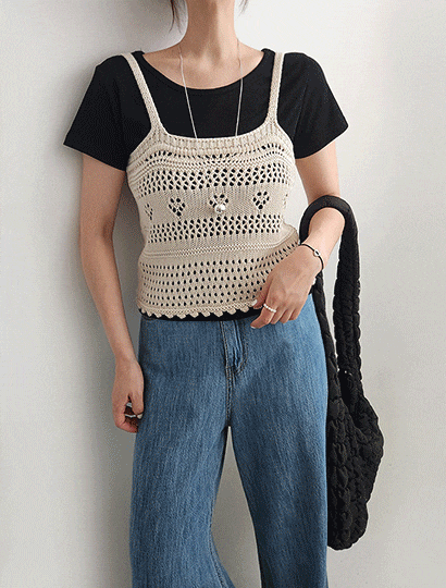 [위드마리] 아일렛 펀칭 니트 뷔스티에 조끼 베스트
