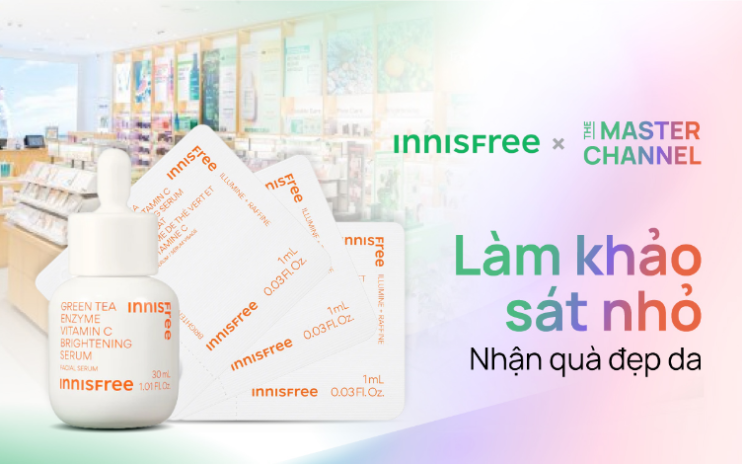 INNISFREE , The Master Channel에서 샘플 증정과 설문조사를 결합한 캠페인 진행