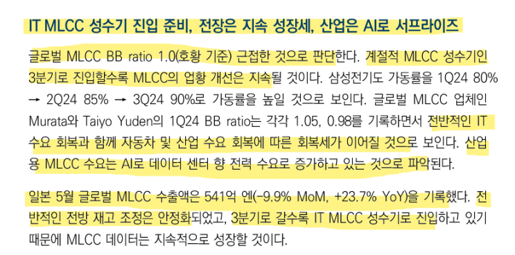 #삼화콘덴서 #삼성전기 #무라타 #MLCC 여전히 IT/범용 MLCC는 수요회복이 완만하긴 하지만 작년 ...
