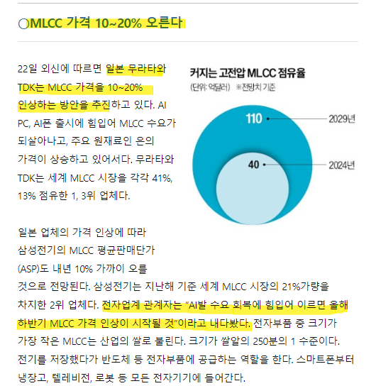 #삼화콘덴서 #MLCC #DCLC 최근들어 AI가 장착된 노트북 및 모바일 수요증가에 대한 전망이 제시...
