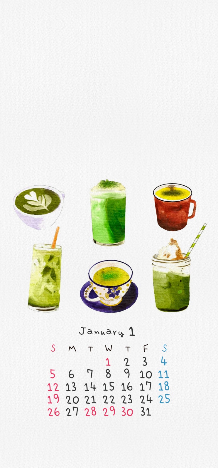 이번 2025년 1월 달력 배경화면은 커피, 그린티 이미지로 작업했습니다. 모카포트, 커피, 그린티까지 3종류...