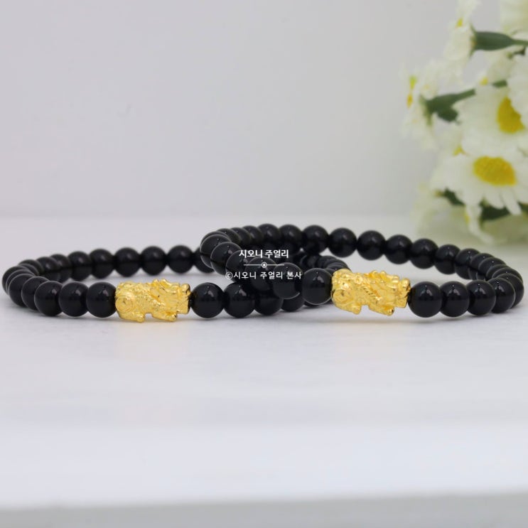 순금비휴팔찌 한돈으로 제작한 오닉스 염주 불교팔찌!