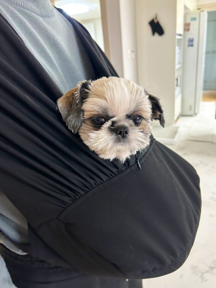 강아지 이동가방 추천, 애견 포대기 해리스펫캐리웨어필라티 앞 슬링백 사용 후기