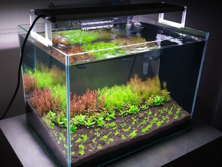 수초어항 셋팅 23일차 지나고 있습니다~ 유막이 생기고 백탁이 찾아왔었으나 유막제거기 달고 환수 두번하...