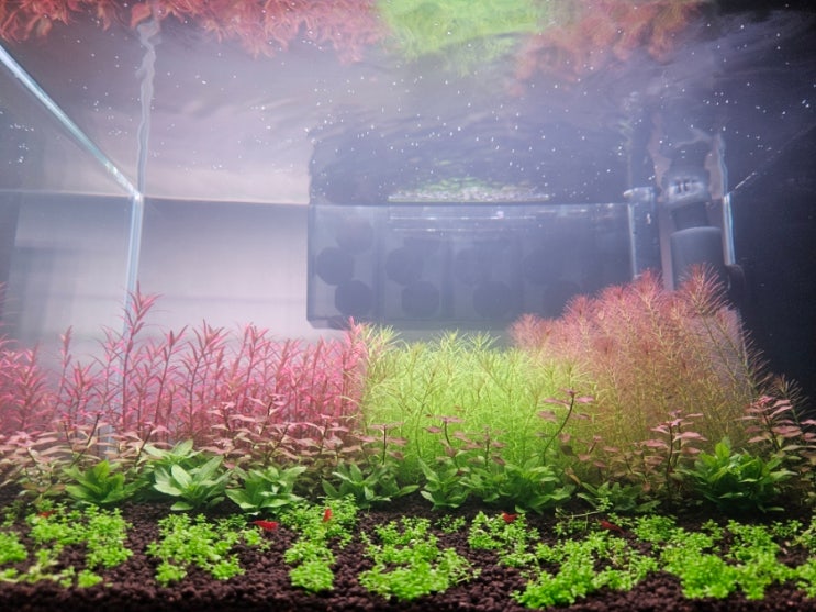 수초어항 셋팅 23일차 지나고 있습니다~ 유막이 생기고 백탁이 찾아왔었으나 유막제거기 달고 환수 두번하...