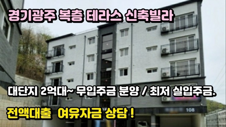 경기광주 초월읍 신축빌라 복층 테라스 2억대 대단지 빌라 전액대출 여유자금 상담 최저 실입주금 안녕하세...