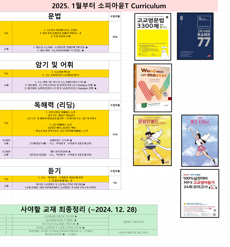 ★ 중3커리큘럼-소피아윤T.(1월부터 커리큘럼 입니다) 고등내신과 수능을 마스터하기 위해 꼭 필요한 4가...