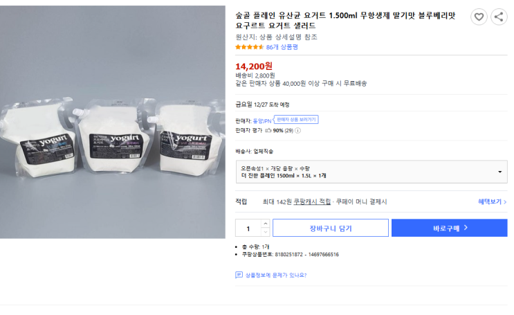 숲골 플레인 유산균 요거트 1.500ml 무항생제 딸기맛 블루베리맛 요구르트 요거트 샐러드