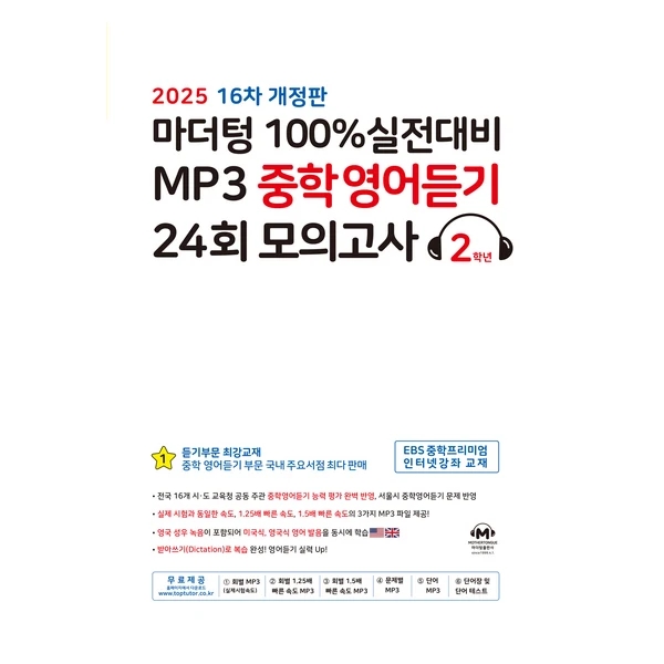 2025 100⁒ 실전대비 MP3 중학영어듣기 24회 모의고사, 영어, 중등 2학년 1. 2025 100⁒ 실전대비 많이 ...