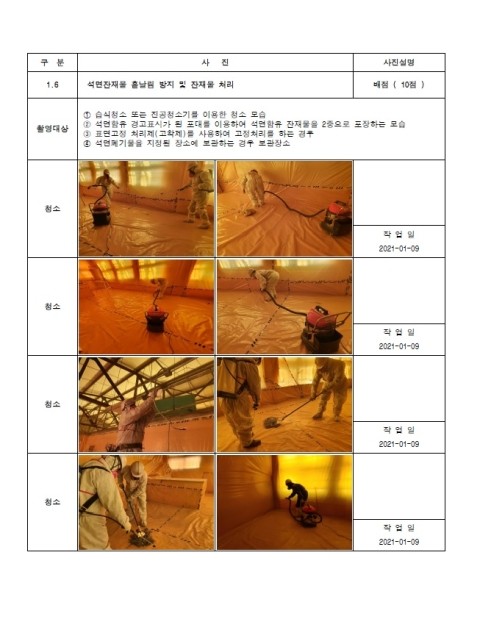 실내- 석면해체 제거작업 밀폐장소 음압유지