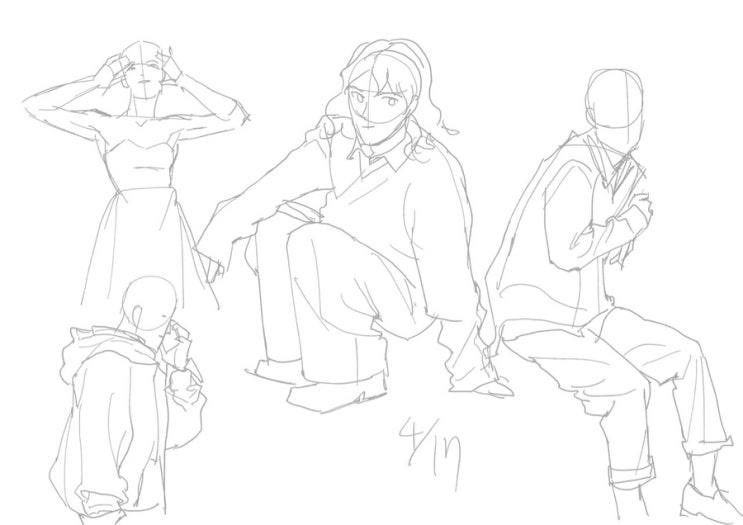 #드로잉 #크로키 쉬엄쉬엄 5개만 하기~~ 진짜 거의 휘갈기듯 했는데 오히려 이렇게 망치듯이(?) 하니까 좀 ...