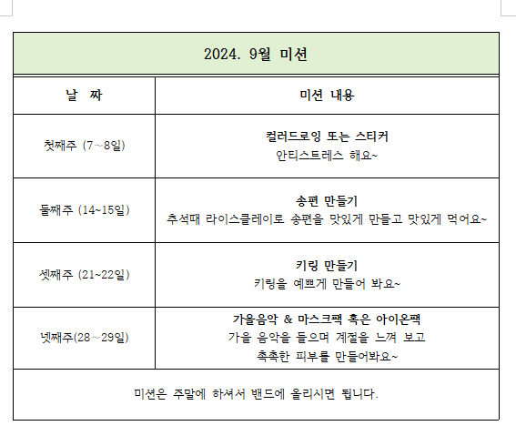 주말미션계획(24.9월)