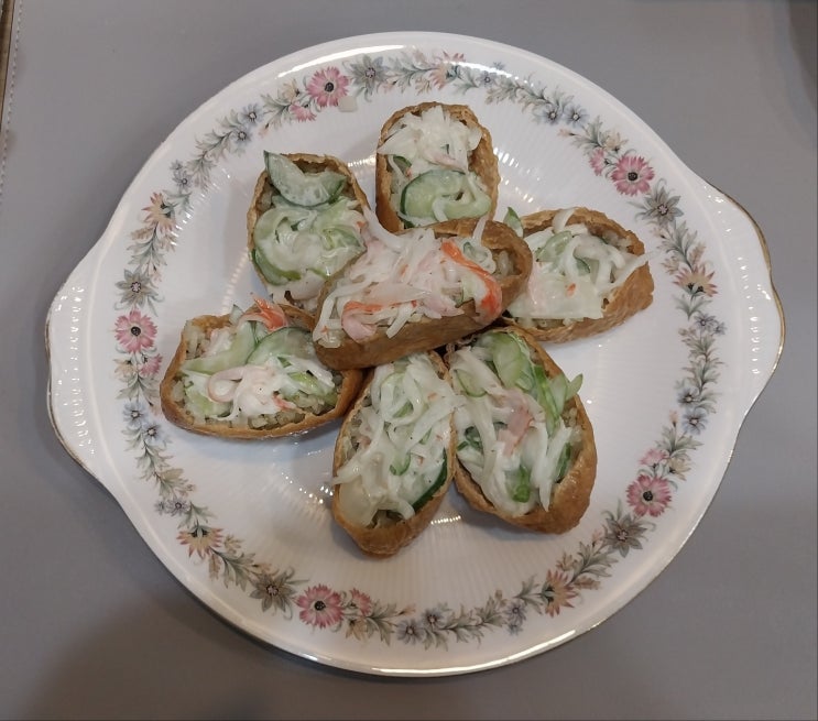 안녕하세요~ 이번주 화요식탁은 "크래미 오이 유부초밥" 입니다. 요리 순서 완성!!