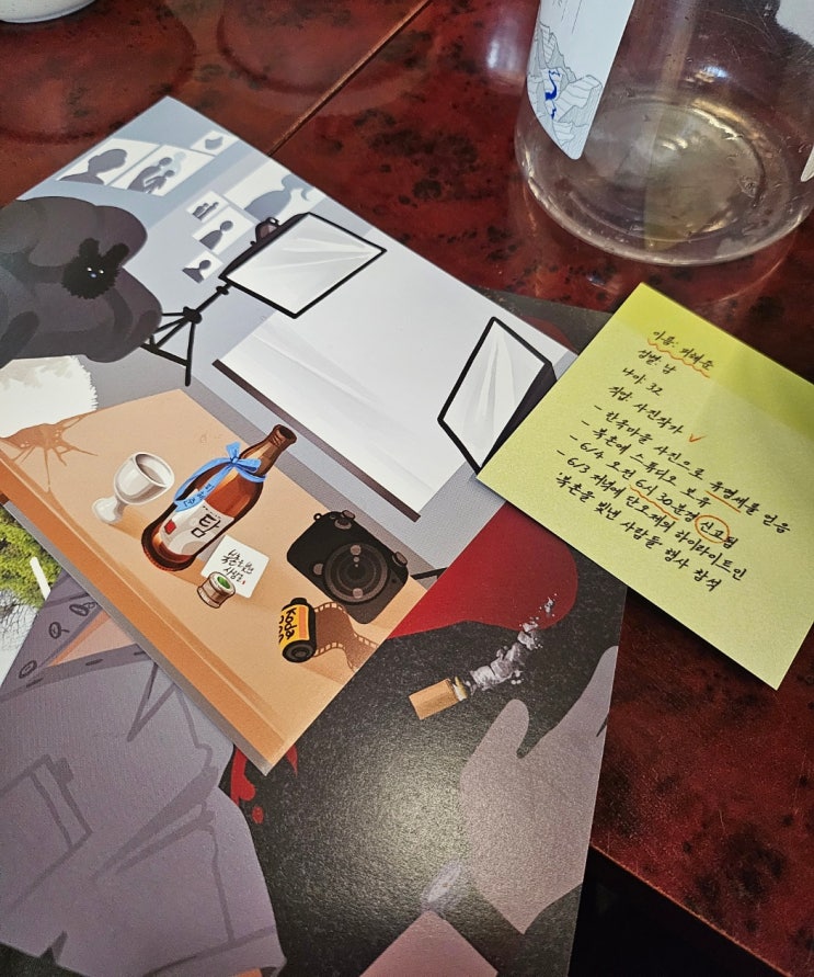 텀블벅에서 펀딩했던 야외방탈출 유능한 사건파일 01. 죽음을 비추는 렌즈 모종의 이유로 최종 플레이 가능...